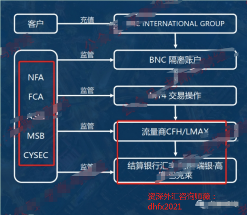 按照BNC领航国际的说法,客户充值进BNC的资金,进了BNC的监管隔离账户,然后在BNC进行托管,流量商为CFH和LMAX,清算银行为汇丰,花旗,瑞银,高盛,巴克莱等,整个业务流程受一众监管机构监管,保证万无一失的安全!!