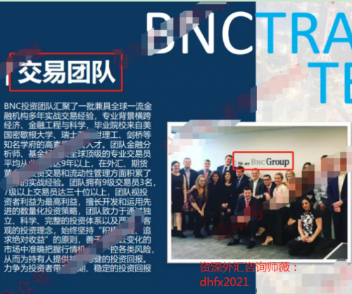 BNC领航国际还公布了其经验丰富,人员众多的交易团队,还在带有BNC Group字样的Logo下合的影,并且还公布了他们在带有BNC字样的办公室,埋头苦干交易的样子,看起来非常真实的感觉!!