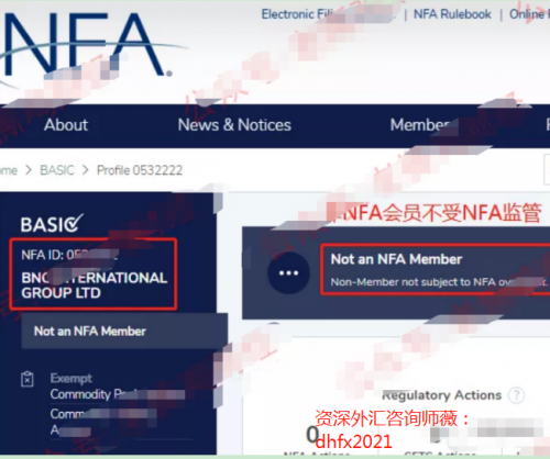 而且BNC宣称的受美国NFA监管也是假的,美国NFA官网显示,BNC International Group Ltd公司非NFA会员不受NFA监管,所以BNC领航国际的所有东西都是假的,没有一样是真的!!包括流量商CFH/LMAX,清算银行等等都是假的!!