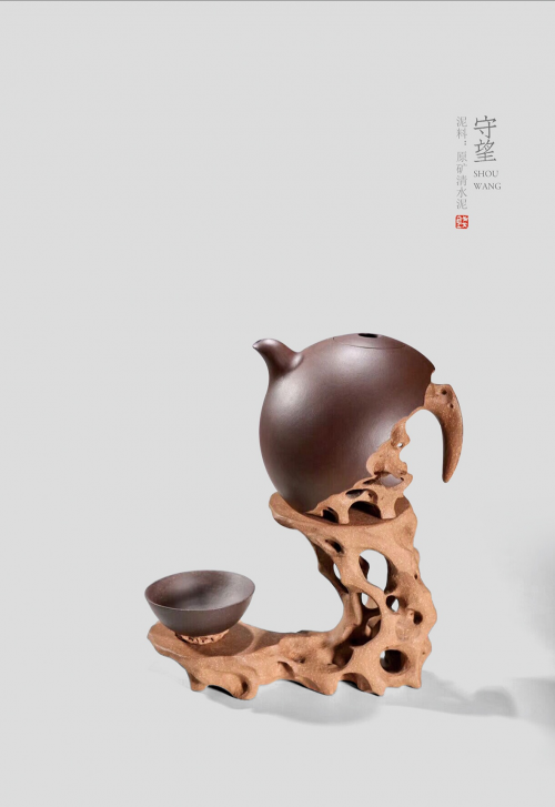 “天将降大任于斯人也,必先苦其心志,劳其筋骨,饿其体肤。”古之成大事者,无不历经重重考验,而钱樟法也正是在这样一个艰难困苦的环境中带着自己的信念和情感创作出了“守望”这件作品。“守望”这件作品一共由三部分组成:壶、杯子、底座,因为作品中涵盖了雕塑艺术和制壶工艺的结合,所以制作成型的难度非常高,从纸上初稿到紫砂泥土的定型,再到反复修正为成品,钱樟法从不计较所花费的时间与精力是否值得,因为在他心中只有一个信念——就是要呈现出一个完美的“守望”。