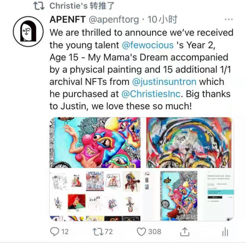 标题:孙宇晨以44万美元拍得Fewocious的NFT作品