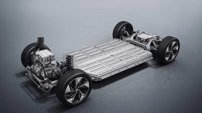 在悬架上,阿尔法T前悬架采用麦弗逊独立悬架、前下摆臂前翻,后悬架采用H臂多连杆悬架,X向占用空间小,保证底盘性能基础上有利于电池布置,这便为极狐阿尔法T 93.6kW·h 大容量的电池模组放置提供了硬性条件,保证了653km超长续航的储备。同时,前后框架式副车架的应用也有利于电机布置搭载。