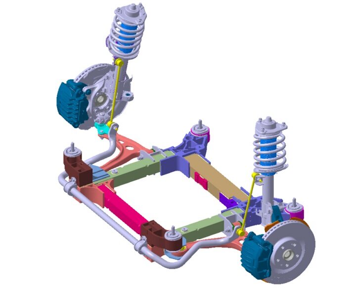 众所周知,极狐阿尔法T采用了上钢下铝结构,完美平衡了轻量化与安全性。在选材上,阿尔法T采用全铝合金副车架和摆臂结构件、空心稳定杆,高许用应力弹簧,通过轻量化材料、工艺、结构的设计应用,整体减重约20%,在轻量化的同时给整车碰撞提供更多防护,这也是其能获得C-NCAP五星等级、C-IASI指数优秀级别的重要因素。此外,稳定杆与稳定杆衬套硫化一体的设计,还在很大程度上提升了NVH性能。